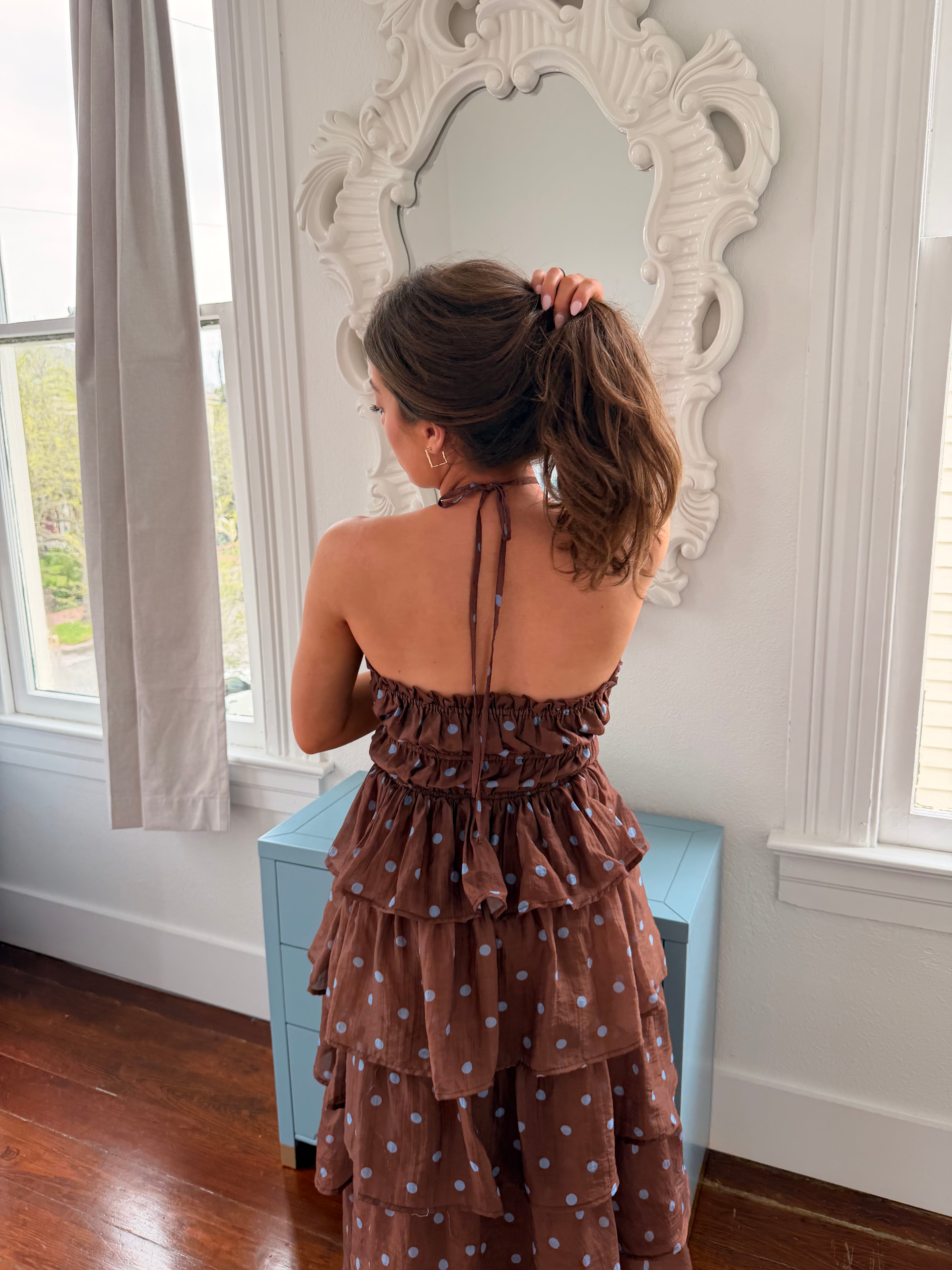 Where are my polka dot lovers?? We’ve got another ruffle, dainty, feminine dress for you girls! I’m planning on wearing this to dinners, showers, and even church!! The ruffles and detailing are where it’s at with the Penny Lane Dress! Another closet staple if you need more dresses!!