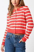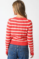 Bring a burst of sunshine to your wardrobe with this cheerful coral-striped cardigan. With its bold, tropical-inspired stripes, it’s the perfect piece to brighten up any outfit. The soft, lightweight fabric offers all-day comfort, making it a great layering option for breezy days or cool evenings.